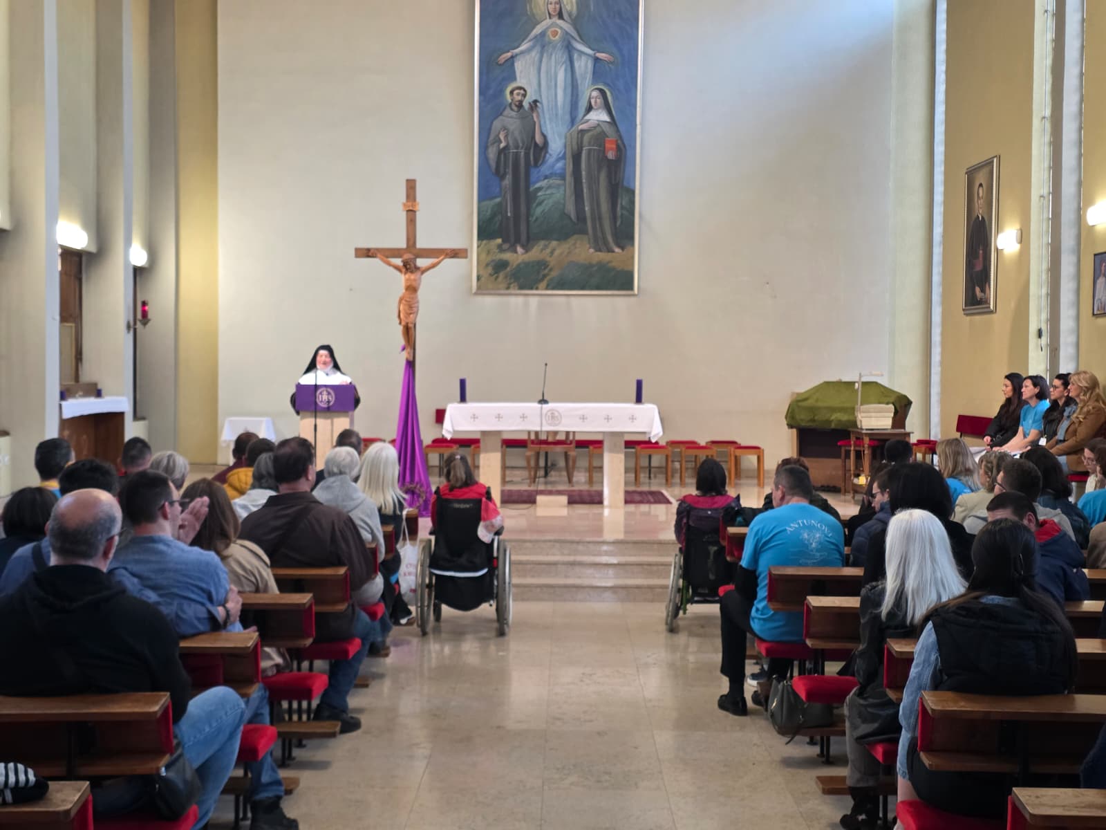 15. ožujka 2026. na 4. korizmenu nedjelju Laetare u popodnevnim satima podohili su nas Antunovi ljiljani koji se već četvrtu godinu okupljaju u prostorima Župe sv. Antuna kod braće franjevavca konventualaca na Svetom Duhu. Susret je inicirao naš župnik fra Ivan Marija Lotar, OFMConv. Okupili su se zajedno sa svojom pratnjom roditelja i volontera i naprosto nas oduševili. Bio je to susret za pamćenje. Čista zraka Božje ljubavi prostrujila je kroz naše duše po susretu sa svakim ljiljanom, ali i sa svima koji su bili pratnji! U jednom dijelu susreta naša s. M. Hedviga održala je nadahnutu katehezu o križu, a potom smo se pobliže susreli pri rešetci u prezbiteriju. Nakon toga smo ih uputili na malu okrepu u prostorima dograđenog samostana. Blagoslovljeni bili, hvala Vam! Radujemo se novom susretu!